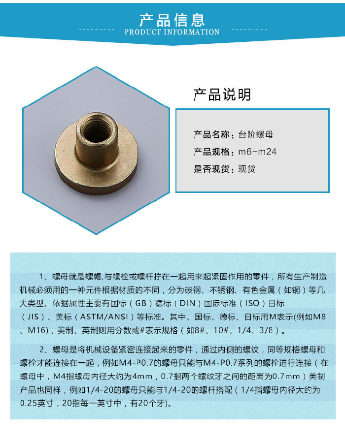 1.普通外T型臺階螺母——就是用于普通的螺釘和T型臺階螺母。