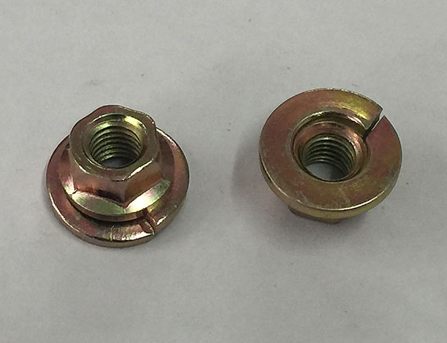 六角彈墊組合螺母和一般的六角螺母尺寸與螺紋規格基本相同,只不過比六角螺母相比,它是墊片和螺母是一體式的,而且在下面有防滑的齒紋,這樣增大了螺母與工件的表面積接觸,相比普通螺母加墊圈的組合,更加牢固和拉力更大。