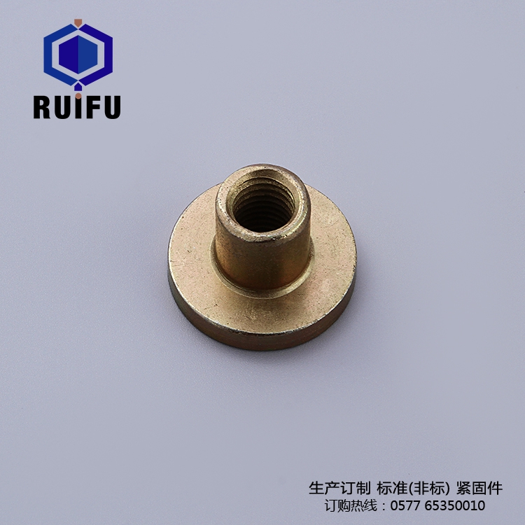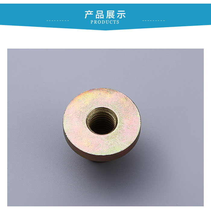 T型圓螺母包括一結構主體,該結構主體為一圓環,于產品的圓環內圈設置多組螺紋,產品的圓環包括組合連接的圓帽及支柱,產品的螺紋為倒梯形的右旋螺紋。通過內圈梯形凹槽組成螺紋,無需緊固件配合便能實現擰緊固定,結構簡單,便于大規模推廣使用,且成本低,節約資源,滿足不同領域及特殊場景的使用。