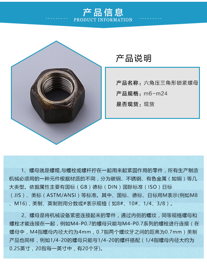 主營產(chǎn)品:防松螺母、鎖緊螺母