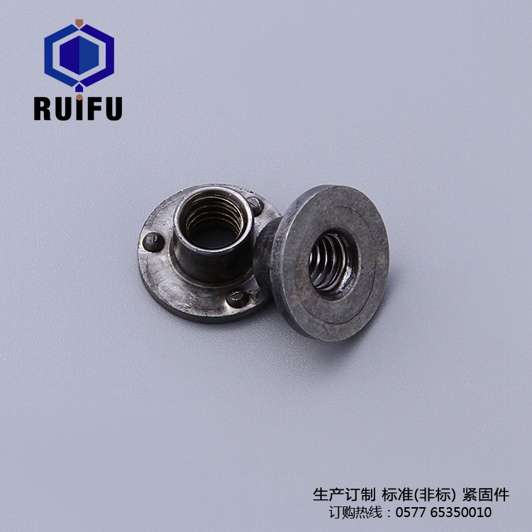 T型焊接螺母,強度比較大,且使用范圍廣,薄厚都可以,但是由于高溫會導致被連接件變形,且不可拆卸,而且一些活潑金屬不能用通常方法焊接,比如鋁,鎂等,需要保護氣或氬弧焊,要求加工工藝和精度。