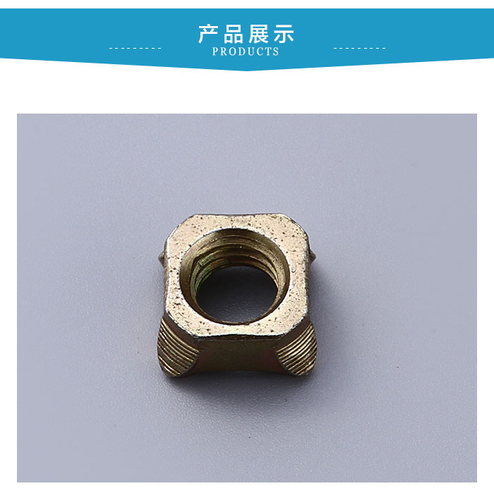 四方焊接螺母是被焊工件的材質(同種或異種),通過加熱或加壓或兩者并用,并且用或不用填充材料,使工件的材質達到原子間的建和而形成性連接的工藝過程, 焊接螺母是具有內螺紋并與螺栓配合使用的緊固件。具有內螺紋并與螺桿配合使用用以傳遞運動或動力的機械零件。