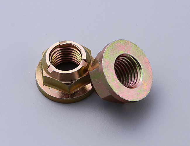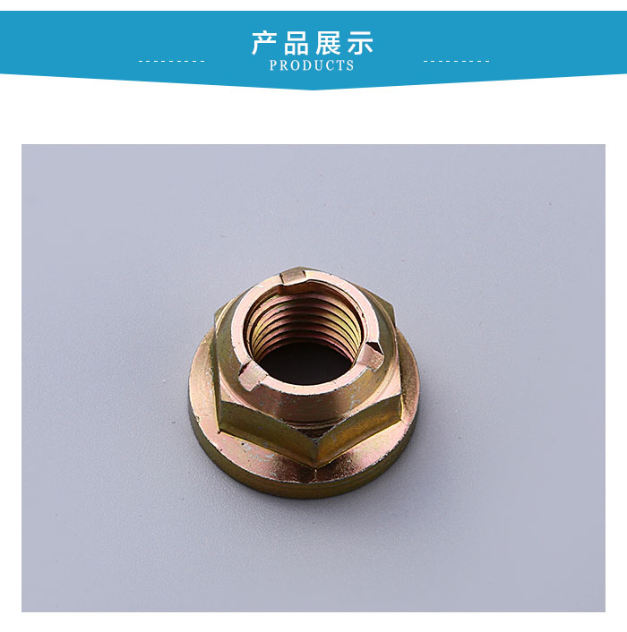 當(dāng)有振動(dòng)發(fā)生時(shí)防松螺母凸起部分相互錯(cuò)動(dòng),產(chǎn)生抬升張力,從而達(dá)到不錯(cuò)的防松效果。法蘭面壓三點(diǎn)緊鎖螺母有鐵的,也有不銹鋼的。但鐵的比較常用。而且還可以根據(jù)客戶所需要的色彩進(jìn)行電鍍處理。一般電鍍處理有環(huán)保和非環(huán)保的。電鍍有環(huán)保彩鋅,環(huán)保鎳,環(huán)保蘭鋅,環(huán)保黑鋅等,也有普通的電鍍,白鋅,彩鋅,黑鋅,白鎳等。